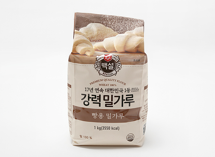 밀가루는 빵의 주성분입니다. 밀가루에 물을 넣고 잘 반죽하면 '글루텐 (단백질)'이라는 메쉬 모양의 조직을 만들 수 있습니다. 글루텐은 빵의 골격이 되어 빵을 부드럽게 부풀리는데 빠뜨릴 수 없습니다. 밀가루는 이 글루텐의 함량에 따라 강력분, 중력분, 박력분으로 나뉩니다. 빵 만들기에는 글루텐이 많은 강력분을 사용합니다. 요즘에는 제과 제빵 재료점이나 온라인 쇼핑몰에서 다양한 종류의 밀가루를 구매할 수 있습니다.